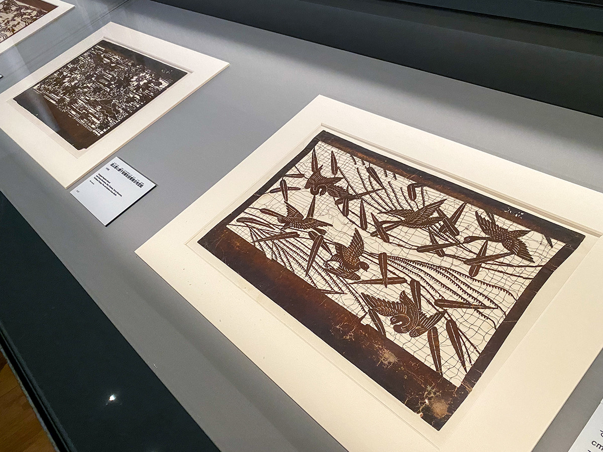 (右手前)《芒に雁模様白地型紙》19世紀[展示期間:12/16~1/18]