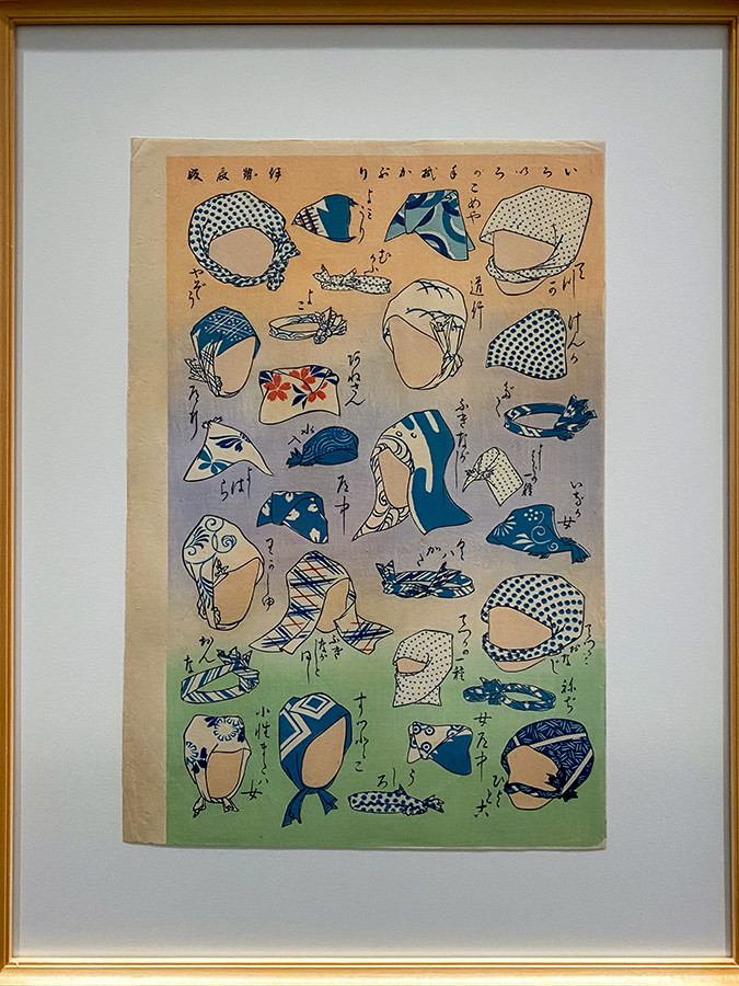 こちらは太田記念美術館のSNSで人気沸騰の1点。浮世絵には手ぬぐいをかぶる人がしばしば登場しますが、こちらには「米屋」「若衆」「あねさん」などかぶり方の名称が記されています。