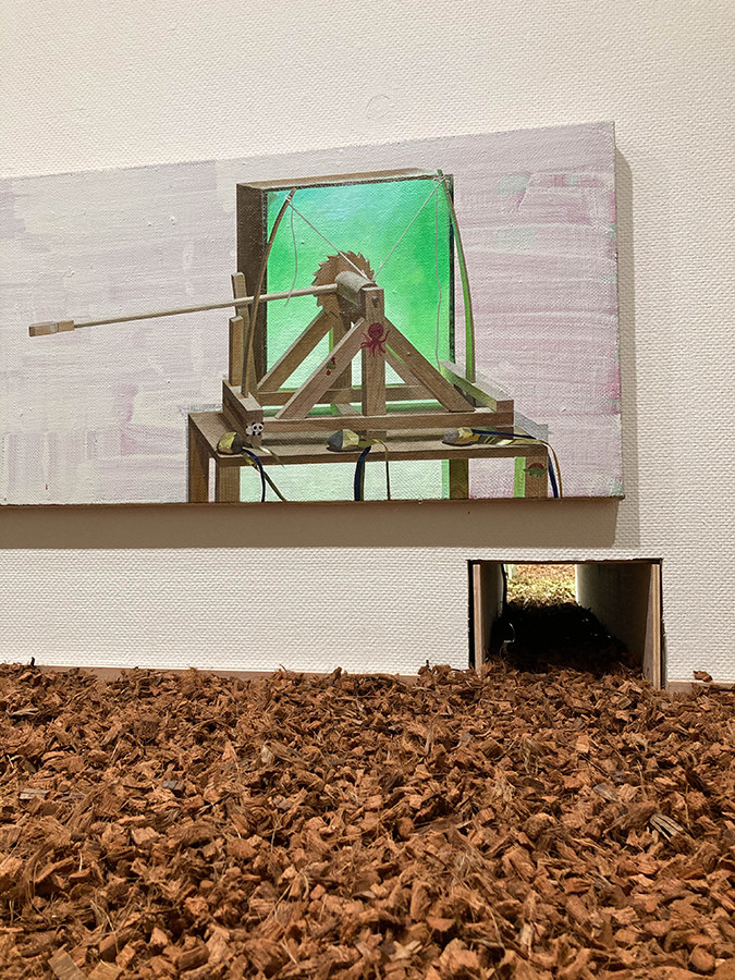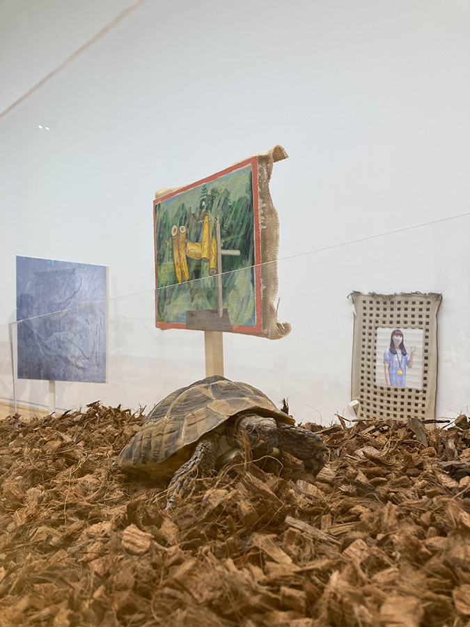 通路に沿って作品が展示されていて、亀も人間もゆったりと鑑賞できるようになっています。 どうやら、作品を見るための目線は、基本的には亀に合わせてあるようです。