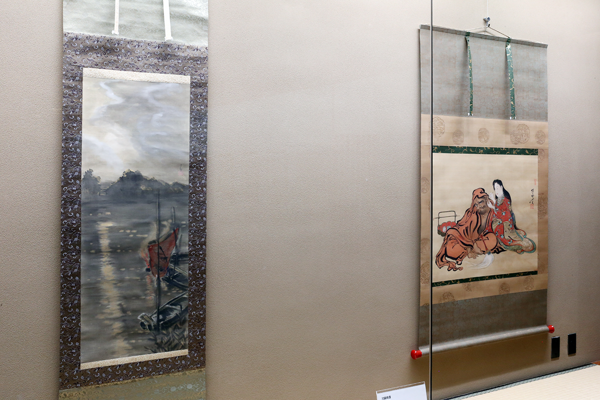 (左から)小林清親《漁火図》 / 河鍋暁斎《達磨耳かき図》