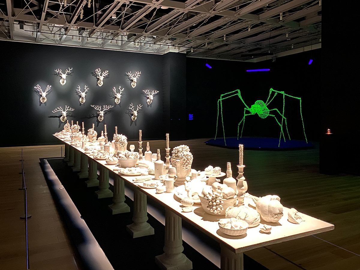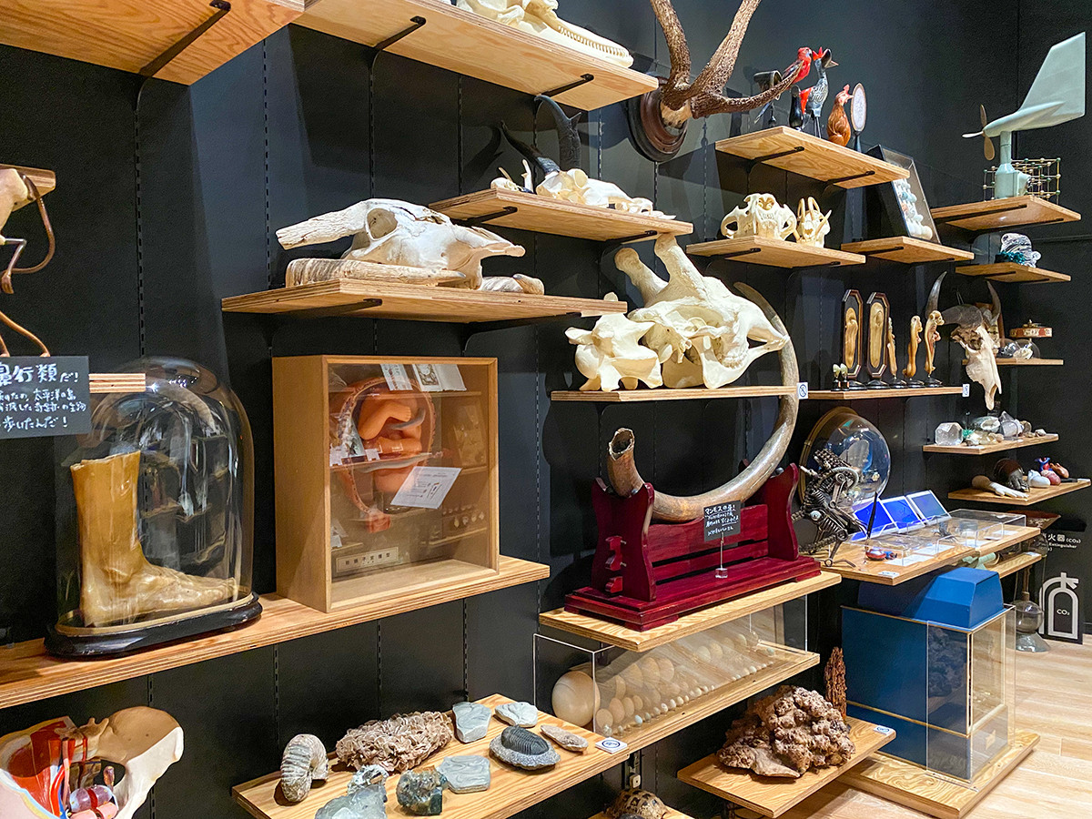 同じく4階には、常設の「荒俣ワンダー秘宝館」も。荒俣宏監修による2つの展示室に分かれており、入って左手の「サイエンスアートの部屋(生命の神殿)」には美しい生物の標本が。右手の「ワンダーの部屋(半信半疑の地獄)」には世界中から集めた珍品、標本、宝物、模型が並びます。