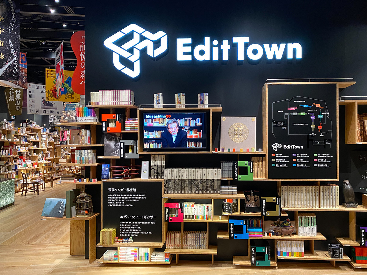 4階のエディットタウンは、巨大な図書空間です。約2.5万冊の本は「記憶の森へ」「世界歴史文化集」「むつかしい本たち」「脳と心とメディア」「日本の正体」「男と女のあいだ」「イメージがいっぱい」「仕事も暮らしも」「個性で勝負する」という“9つの文脈”で並んでいます。本はフロア内なら、どこでも閲覧が可能です。