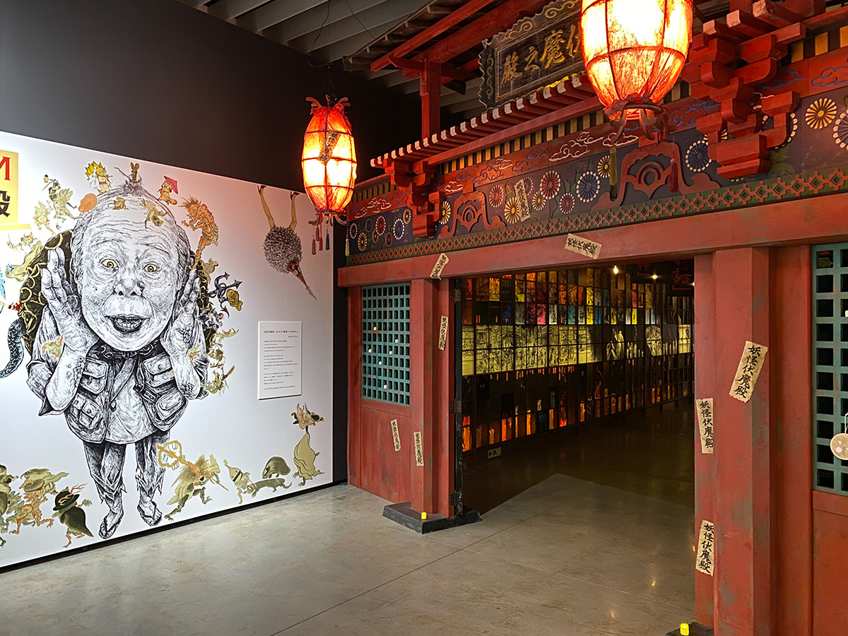 1階に下りると、グランドギャラリーでは「荒俣宏の妖怪伏魔殿2020 YOKAI PANDEMONIUM」が開催中です(3/31まで)。こちらも荒俣宏が監修し、新進気鋭のイラストレーターが描く妖怪絵図や、妖怪のイメージが具象化されたミイラなど、日本各地に潜む多種多様な妖怪が紹介されています。
