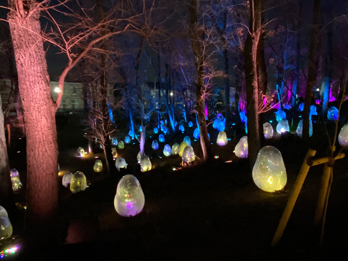 他にも、ところざわサクラタウンには隈研吾が設計した「武蔵野坐令和神社」、すべての客室がアニメやコミックなどの世界観とコラボした「EJアニメホテル」など、見どころがいっぱい。隣接する東所沢公園にも、チームラボによる光のアート空間「どんぐりの森の呼応する生命」が展開されています。