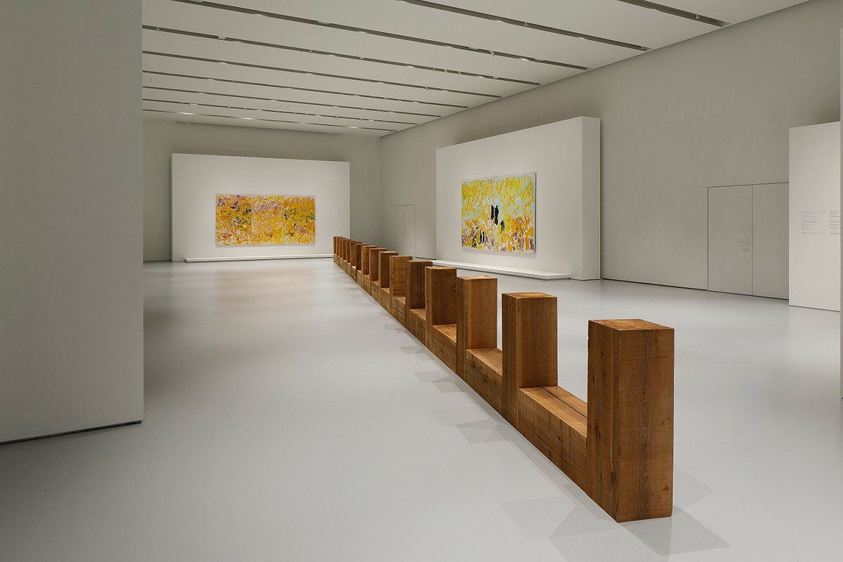 オープン記念となるのは、戦後アメリカを代表する2人のアーティスト、ジョアン・ミッチェルとカール・アンドレによる「Fragments of a landscape(ある風景の断片)」展です。広々としたスペースに、巨大な抽象絵画2点と彫刻作品1点がある風景は静かでありながら圧倒的パワーがあります。これらは、2019年フォンダシオン ルイ・ヴィトンで開催された「A Vision for Painting」展の一部を再構成したものです。
