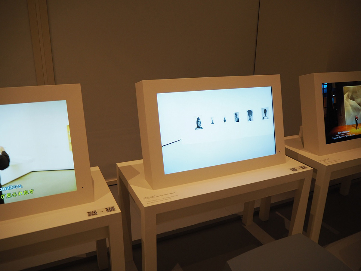 展示会場では、フォンダシオン ルイ・ヴィトンの所蔵コレクションや過去の展覧会、美術以外の音楽会などの映像を鑑賞できるコーナーもあります。また、5階のアートスペースだけでなく、店内にも数多くの現代アートが飾られていて、建物全てを味わうことができます。