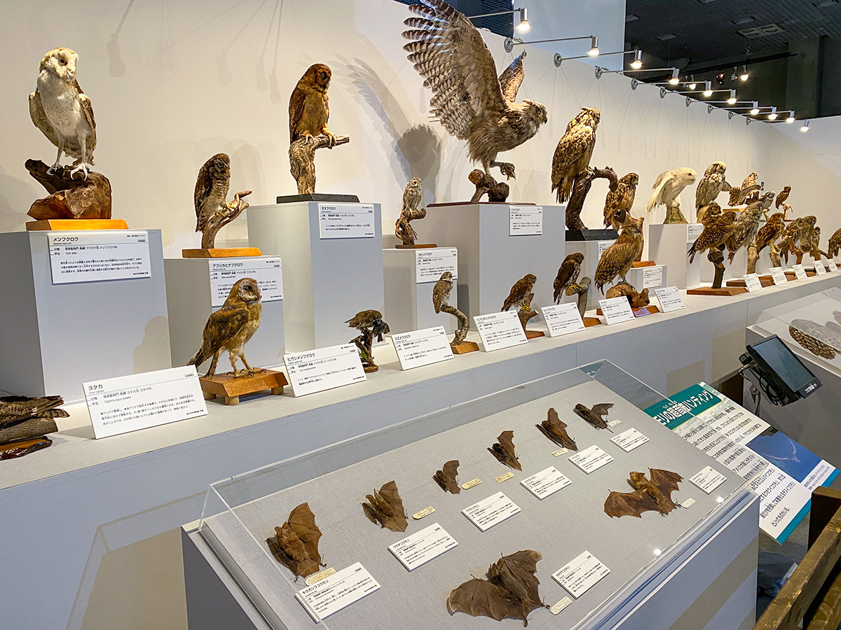 「暗闇のハンター」といえばフクロウ、これだけの種類のフクロウが一挙に並ぶ機会は滅多にありません。フクロウは大きな目が特徴的ですが、暗闇で獲物を探すために、優れた目を持つようになりました。