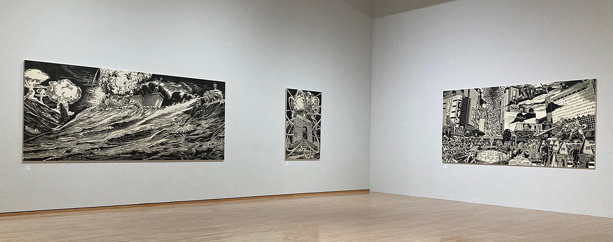 左から《噫!怒濤の閉塞艦》2012 東京都現代美術館蔵、《獄門核分裂235》2012 森美術館藏、《人外交差点》2013《