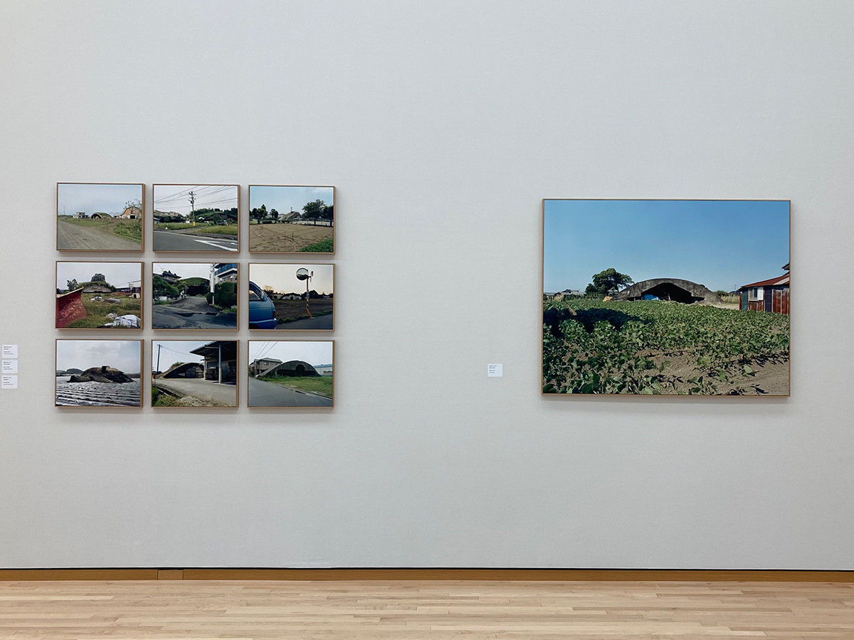 下道基行さんの《戦争のかたち》は、国内に残された砲台や戦闘機の格納庫などを見つけて訪ね、記録したものです。日常生活の中で風景に溶け込み「かたち」として残っている戦争時代のものが、機能を失った後も別の機能を担い、記憶として残されている状況を記録されています。