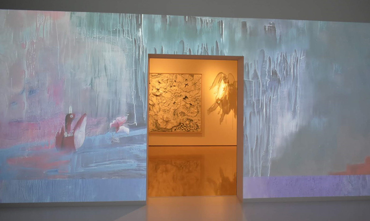 絵がプロジェクションマッピングで壁に投影されています。昨年のホームステイ期間中に描かれたものだそう。