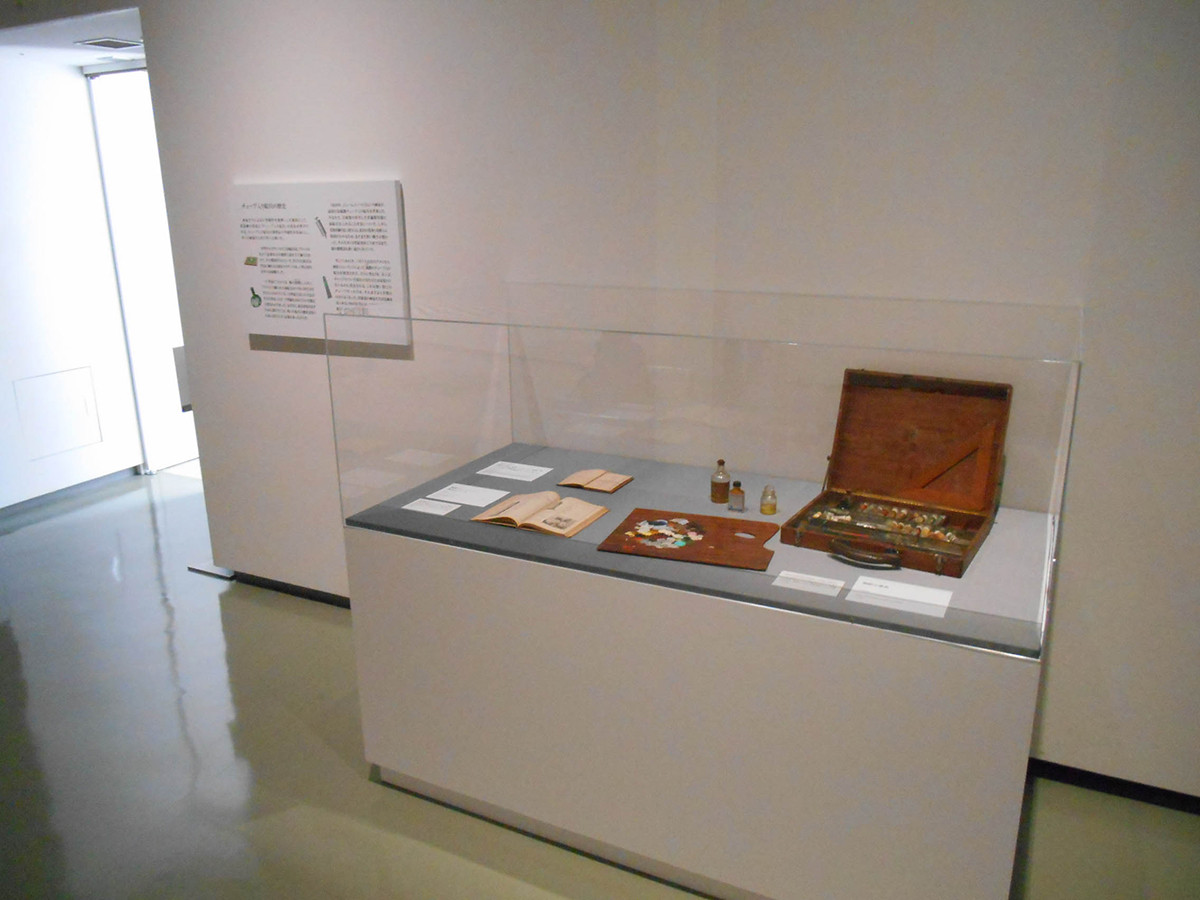 当時の絵の具やパレットなどの資料も展示されています。チューブ入り絵の具の普及によって画家たちは戸外で制作しやすくなったそうです。 パレットに残った絵の具を見て、このパレットの持ち主は、どんな絵をかいていたのかなと思いました。
