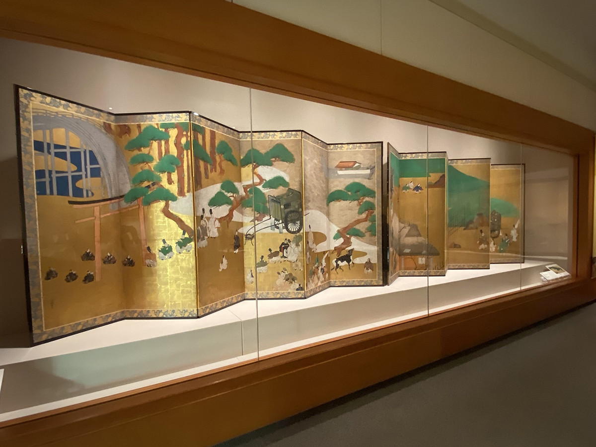 こちらも国宝で、源氏物語の一場面を表した俵屋宗達の屏風です。右隻は第十六帖「関屋」、左隻は第十四帖「澪標」の場面が描かれています。本展では左右に登場人物の説明があり、わかりやすい展示でした。