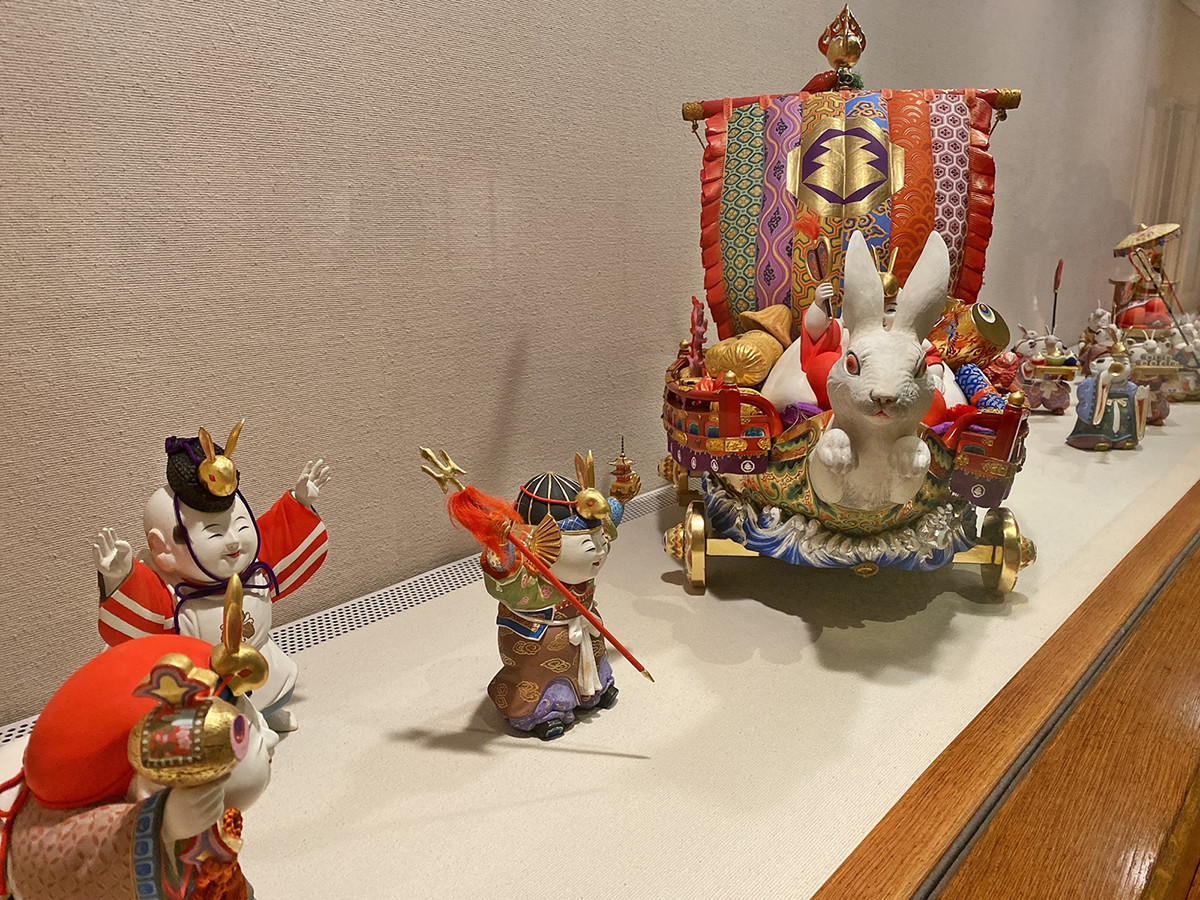 人形たちが兎の冠を付けているのは小彌太が卯年生まれだからだそうですが、そんなところにも夫人の愛情が感じられる逸品です。