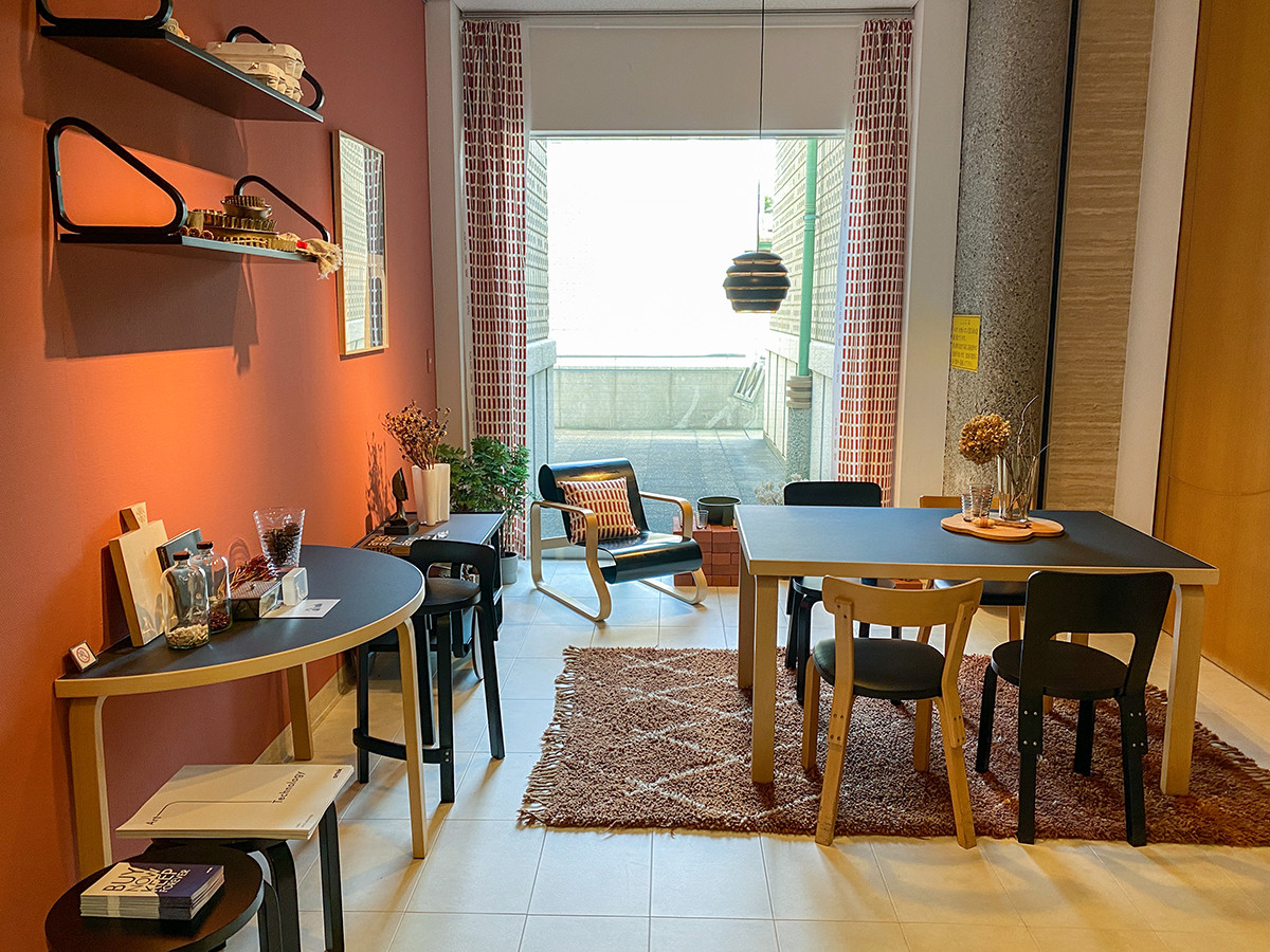 建築やデザインが好きな人なら感性を刺激してくれそうな展覧会です。会場には各所に「アアルトデザインと暮らす」と題した特設コーナーも設置。アルテックの家具とイッタラの器で、アアルトのデザインを体感できます。このコーナーは撮影も可能です。