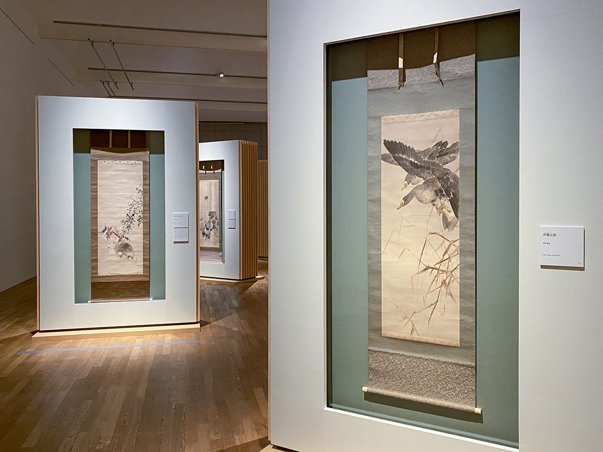3階の会場に進むと、圧巻の花鳥画がずらり。その作品は「省亭風」と呼ばれ、人気を博しました。