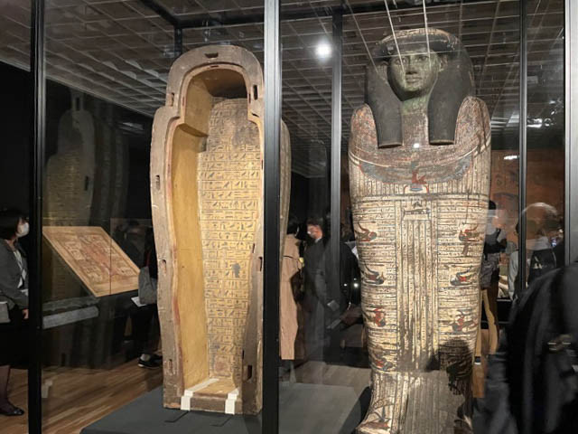 棺の外側にも、内側にもびっしり描き込まれた絵とヒエログリフ。その圧倒的な量に、思わずひるんでしまいそうになります。 古代エジプトの人たちが、死後の世界をどう考えていたのか、垣間見える気がします。
