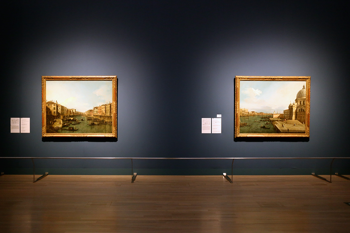(左から)アントーニオ・カナール(カナレット)《カナル・グランデ、ヴェネツィア》1738-42年 / アントーニオ・カナール(カナレット)《サンタ・マリア・デッラ・サルーテ聖堂、ヴェネツィア》1738-42年