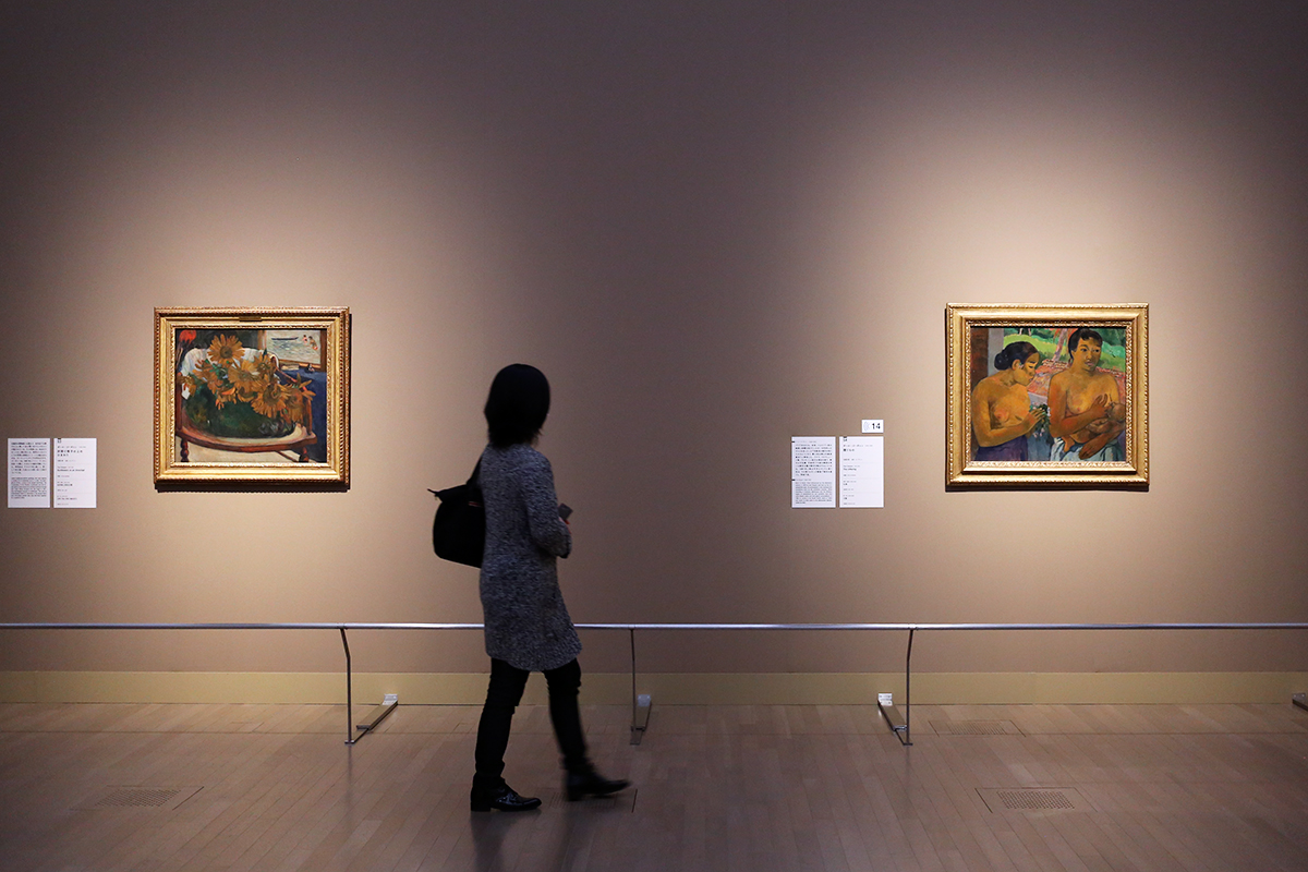 (左から)ポール・ゴーギャン《肘掛け椅子の上のひまわり》1901年 / ポール・ゴーギャン《贈りもの》1902年