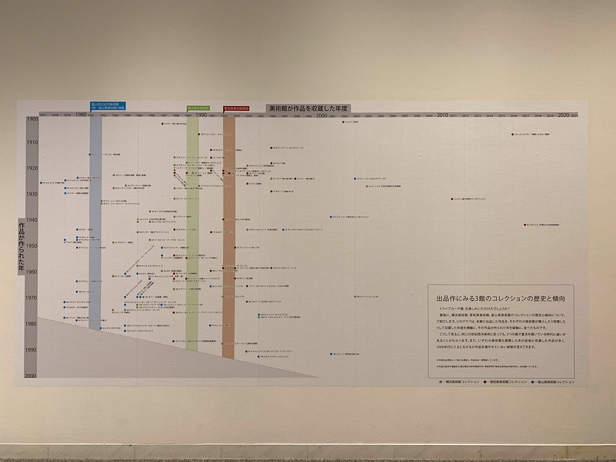 出口付近に、各美術館が作品をコレクションした時期をまとめた年表があります。最近は、各美術館とも20世紀美術の新収蔵品が増えていないようです。この傾向は、本展に参加した美術館以外でも同じと聞きました。
