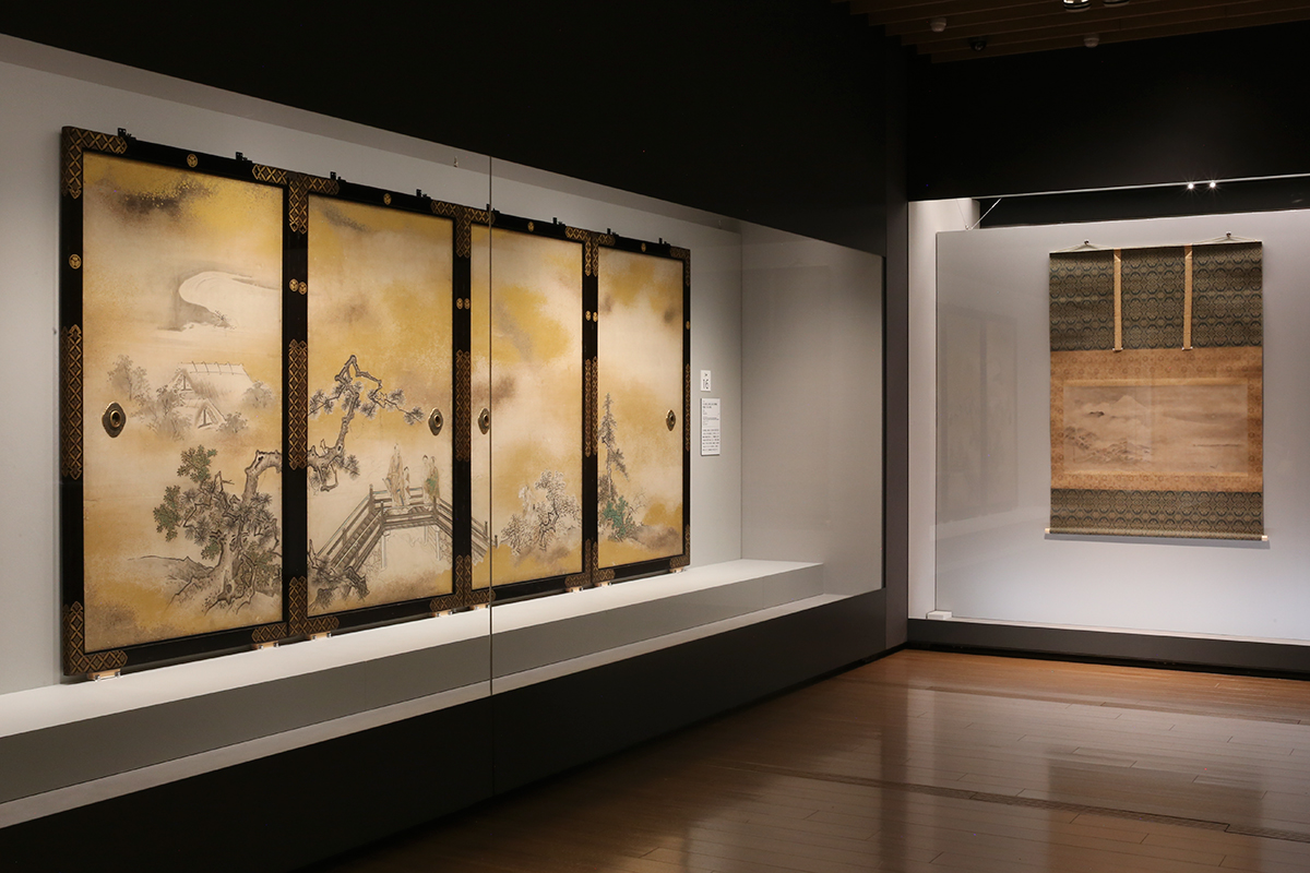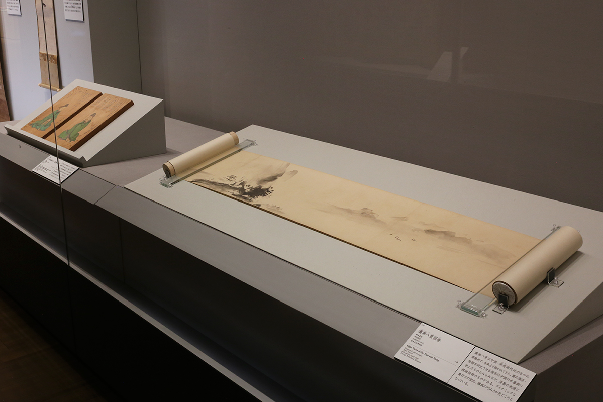 (左奥から)伝 狩野探幽画、石川丈山賛《三十六詩仙額のうち 儲光羲・王昌齢》寛永20年(1643)徳川美術館 / 狩野探幽《瀟湘八景図巻》正保3年(1646)栃木県立博物館