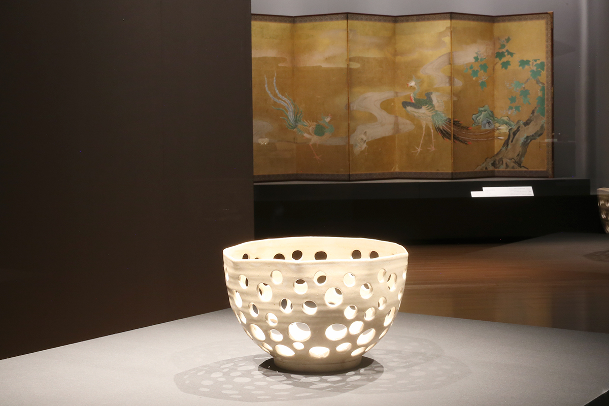 (手前)野々村仁清《白釉円孔透鉢》江戸時代 17世紀 MIHO MUSEUM