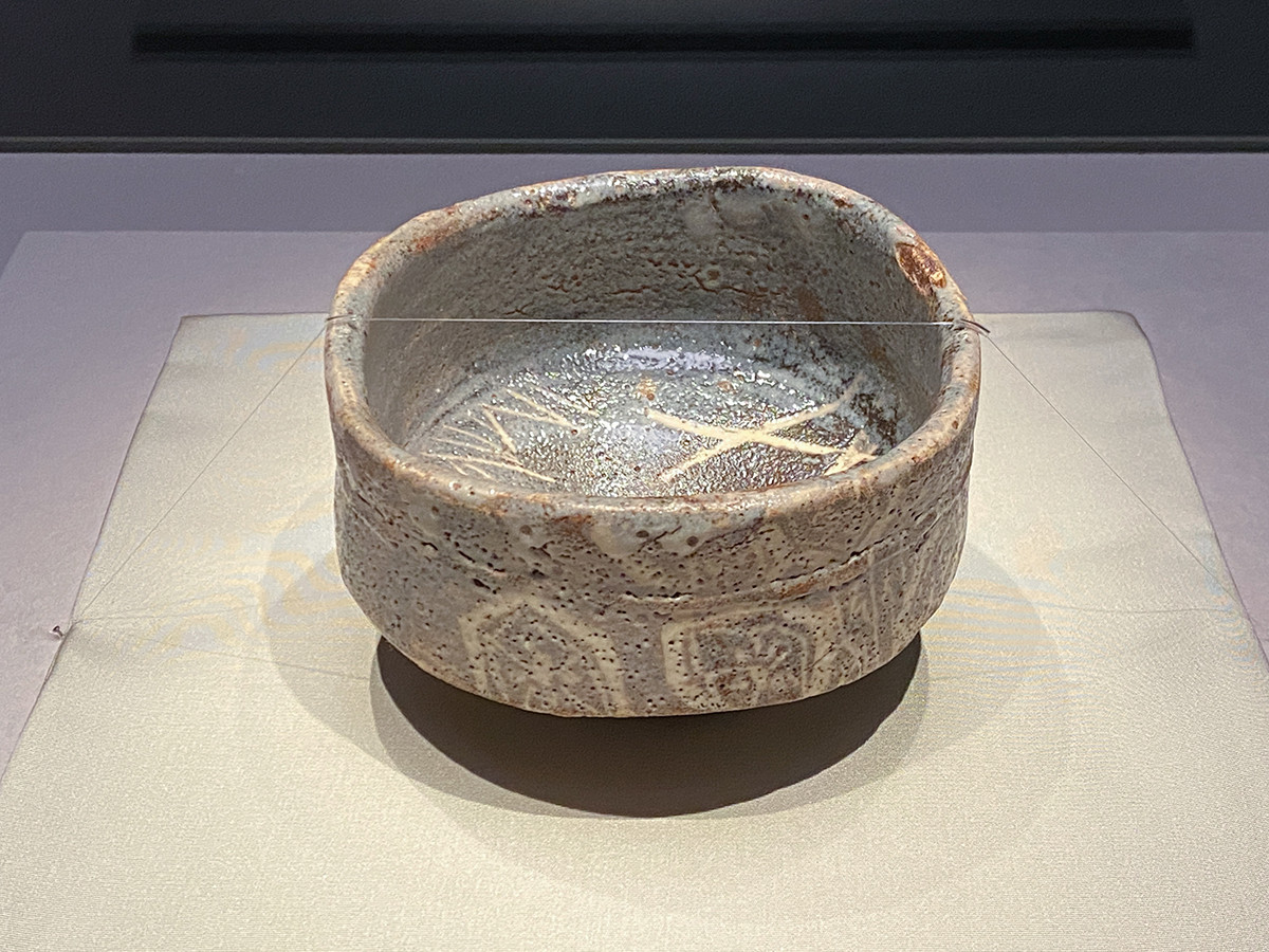 重要文化財《鼠志野茶碗 銘 山の端》もそのひとつで、歪みのある形と大胆な文様が特徴的です。当時はまだ「鼠志野」という概念がなく「志野」として取り上げられました。