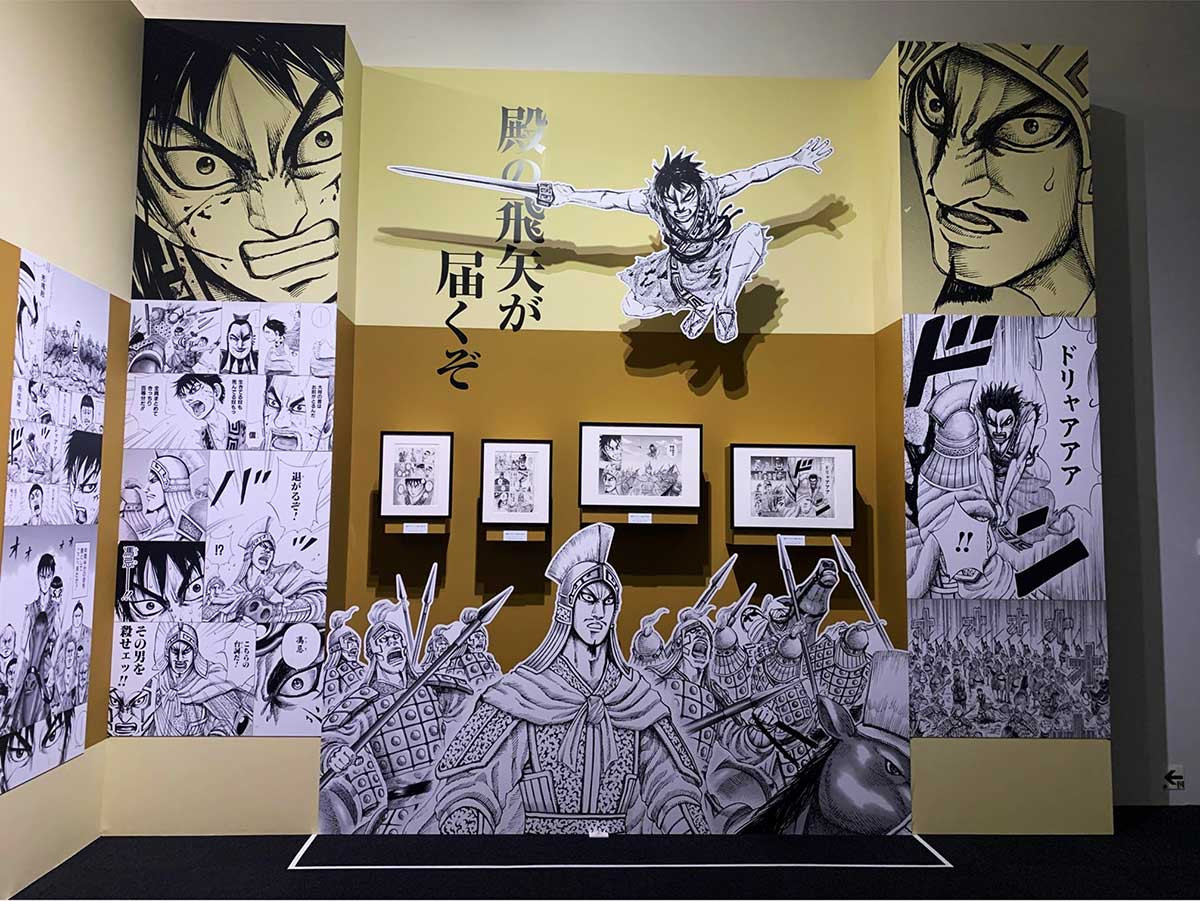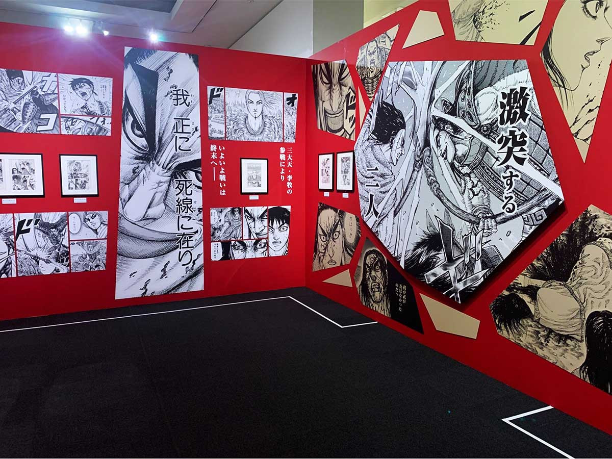 原 泰久氏作『キングダム』は「週刊ヤングジャンプ」(集英社)に連載中の大人気漫画。TVアニメや実写映画も大ヒットしています。漫画作品の原画を中心とした展覧会は、作品の世界観を立体的に体感できるところが大きな魅力。