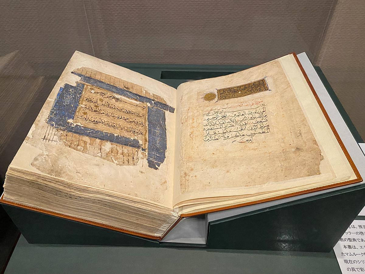 こちらは、マムルーク朝(1250-1517)時代に、現在のシリア地方で書写されたもの。その巨大さと豪華さが目をひきます。金色の絵の具で彩られた花は、各節の区切りを示したものです。
