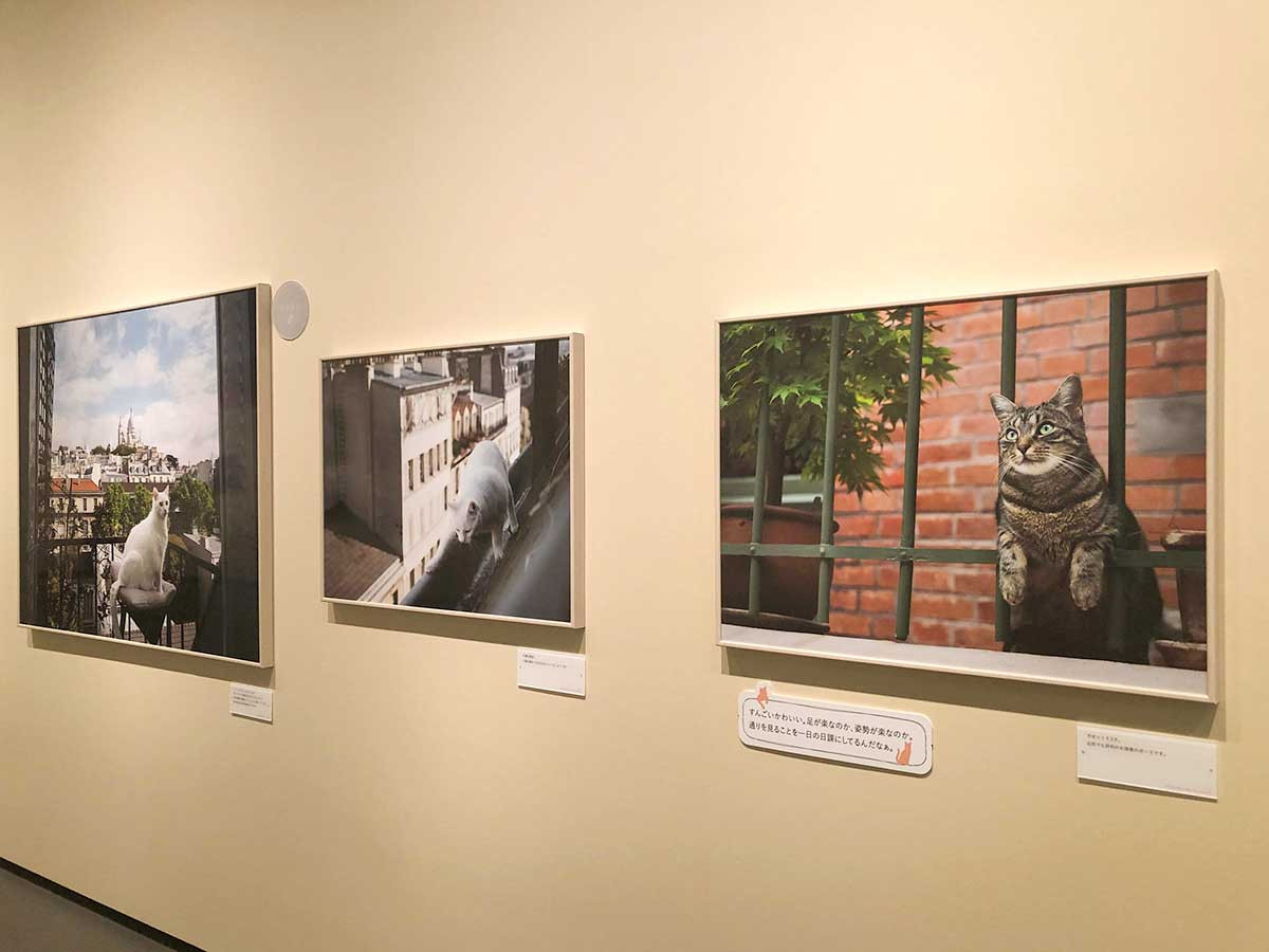 写真のキャプションは、ネコの名前や性別を表示。撮影したときの思いが分かる岩合によるコメントもあります。また、キャットタワーを模した展示など盛りだくさんでネコを感じることができます。