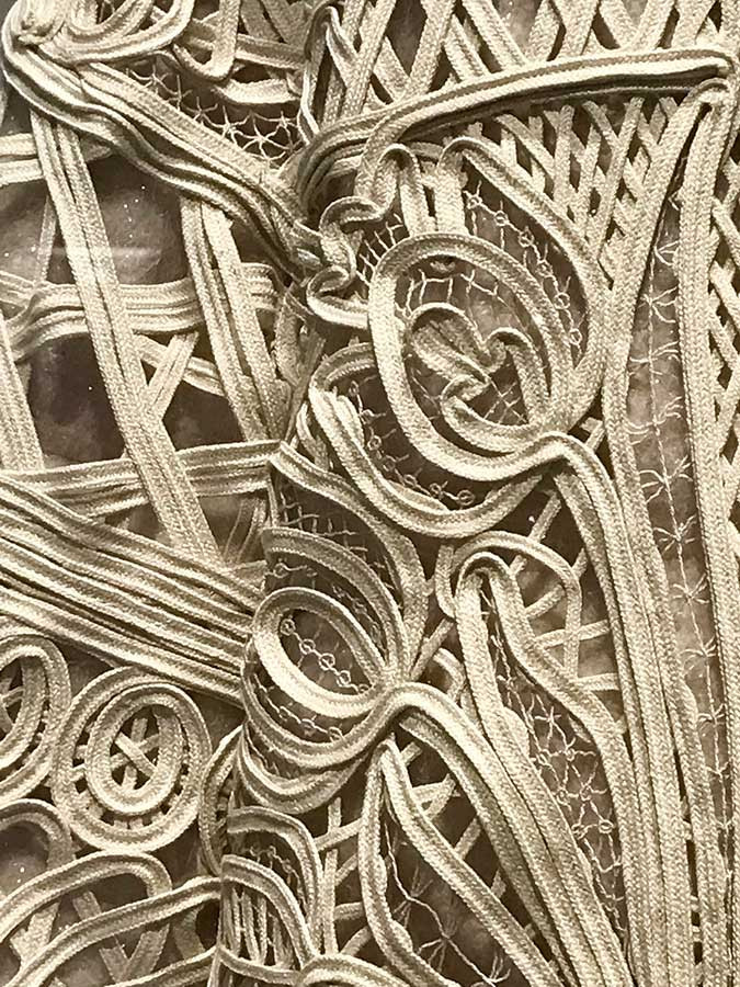 隣には完成された洋服が飾られています。凝った刺繍には、それ以上のもの—費やされた時間、労力―が宿り、服にパワーを与えています。