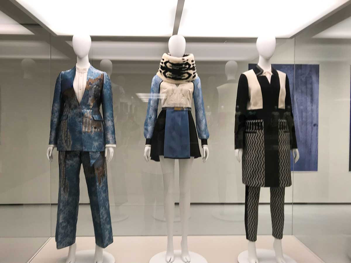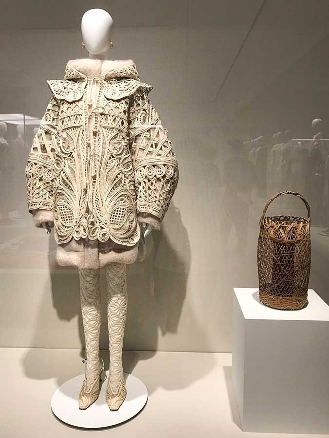 「クラフト」では、九谷焼や竹籠、こぎん刺し着物など伝統技法から学び、「Mame Kurogouchi」に落とし込んだ洋服がそれぞれ展示されています。黒河内が何をどのように見て、どこに魅かれ、何を表現しようとしたのかを知ることができます。