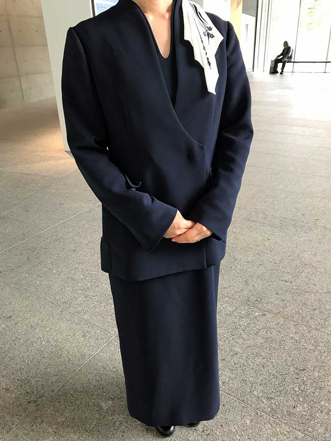 「Mame Kurogouchi」デザインのスタッフユニフォーム。写真撮らせてもらいました。