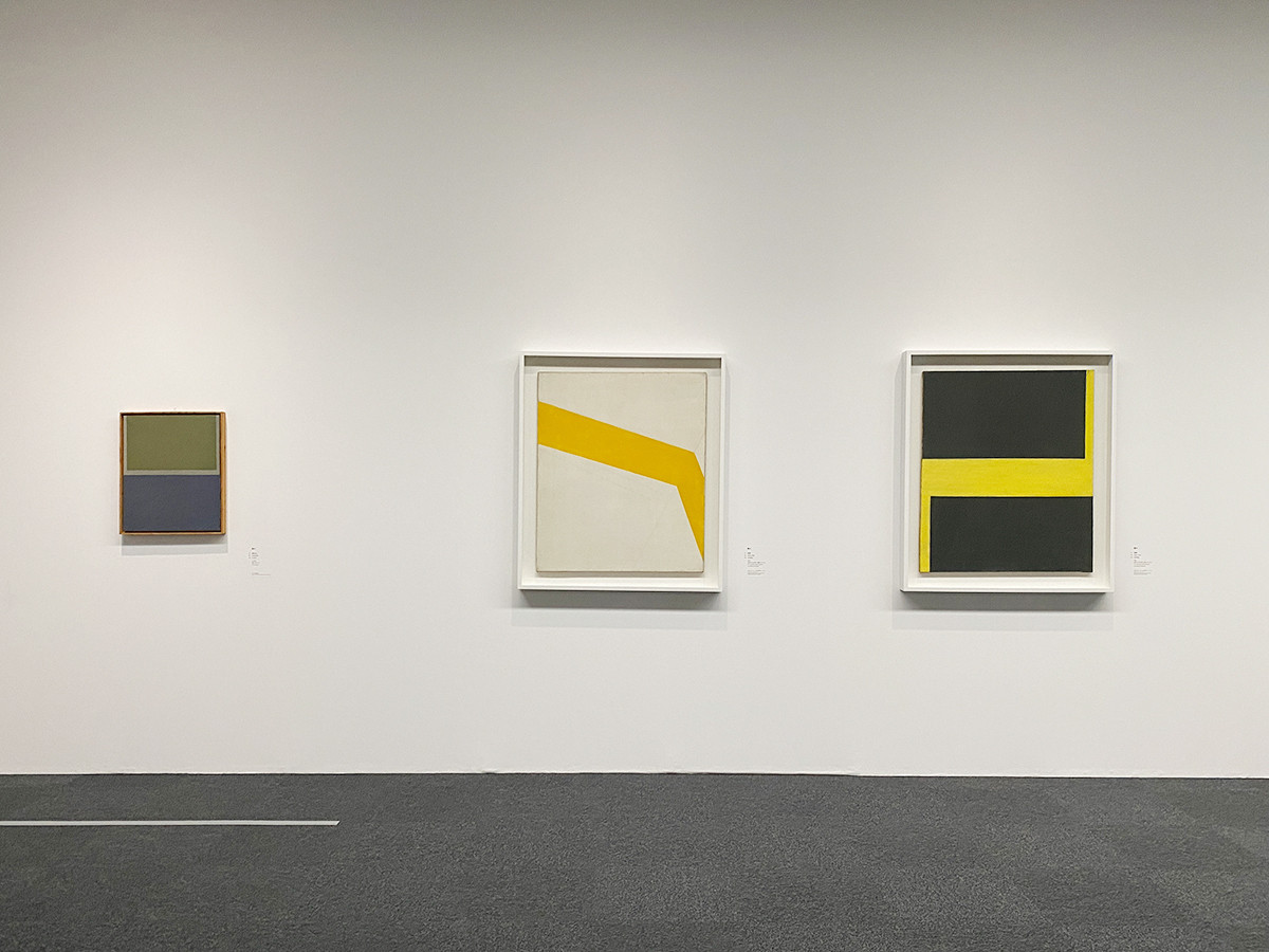 三角形の作品や、壁に作品を立てた作品など、絵画の枠組みを否定するような創作を進めていったパレルモ。ただ、作品が物質化する一方で、筆触をともなっている作品など、絵画的な余韻が残されていることも特徴的です。