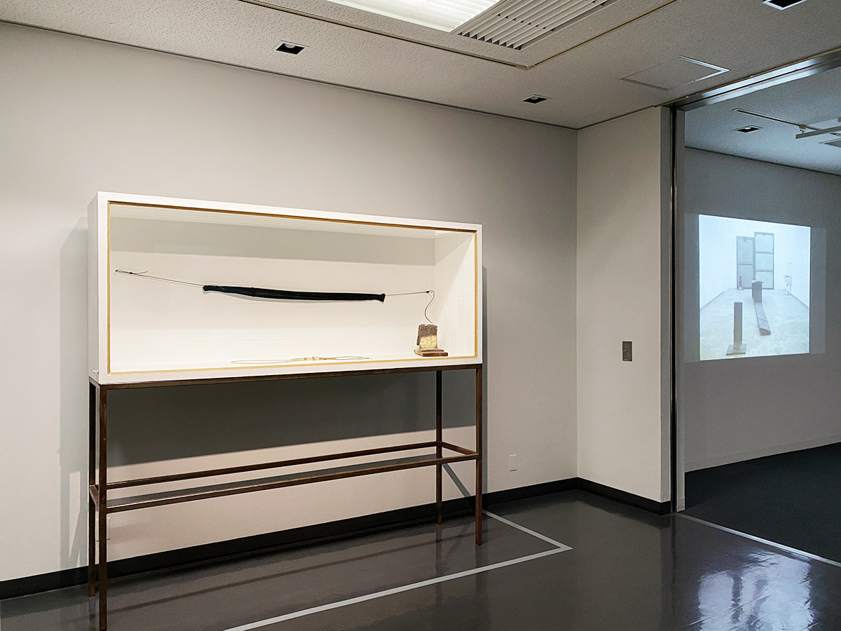 《ユーラシアの杖》は、フェルトで覆われた4本のアングル材を、水平の状態から垂直に立てたりすることで対立する二項を示し、それを結びつけようとしたアクション。1967・68年に、ウィーンとアントウェルベン(ベルギー)で行なったアクションのうち、ウィーンで用いられたアングルによる重要な作品で、欧米以外では初展示です。