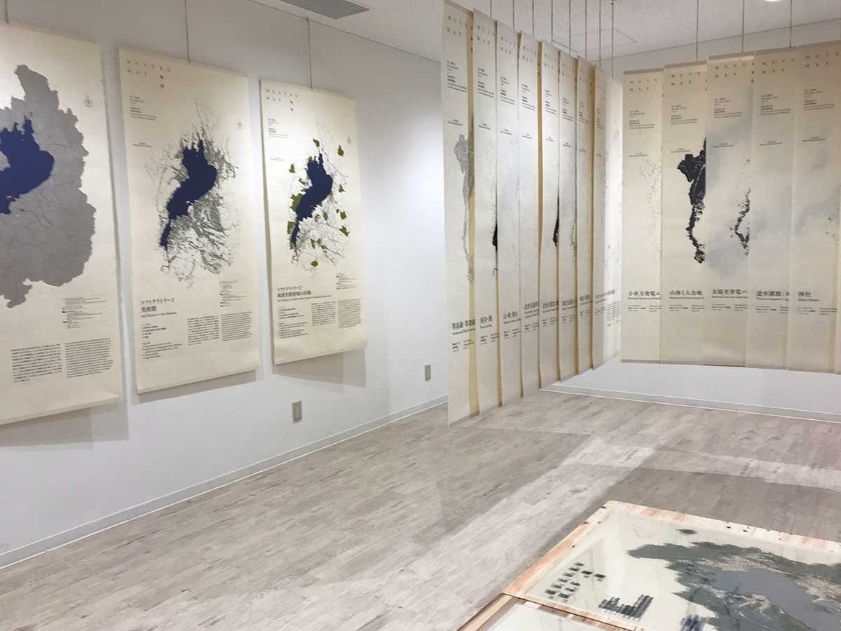 1階にできたラボ。現在は「Soft Territory」展の関連展示として、成安造形大学芸術学部地域実践領域による「MUSUBU地図」展が開催中