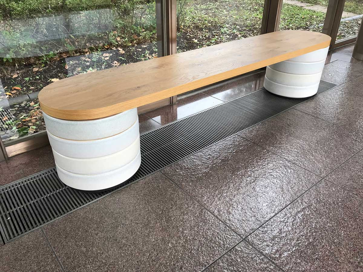 ベンチの脚の部分は信楽焼