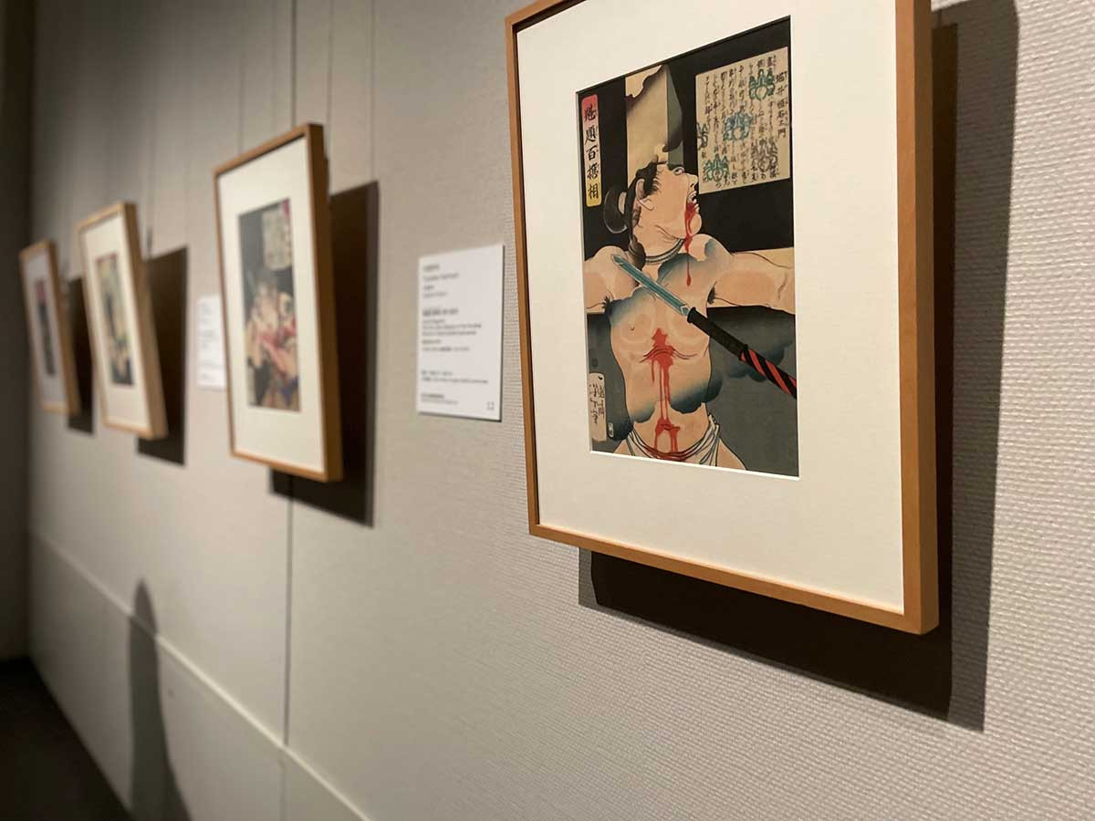 幕末から明治にかけて活躍した月岡芳年の凄惨な「血みどろ絵」「残酷絵」が続きます。血を流し、目をカッと見開き、苦悶に顔をゆがめる絵は、見るものの心を激しく波立たせます。