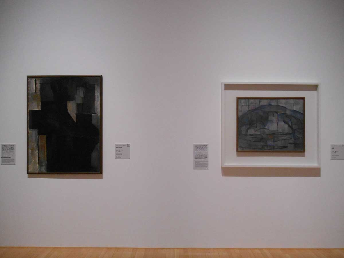 会場の中ごろから、作品の雰囲気が変わります。でも、変化は少しずつで、いろいろと試行錯誤している様子が見て取れます。この時期、まだ水平垂直のイメージは見えてきません。