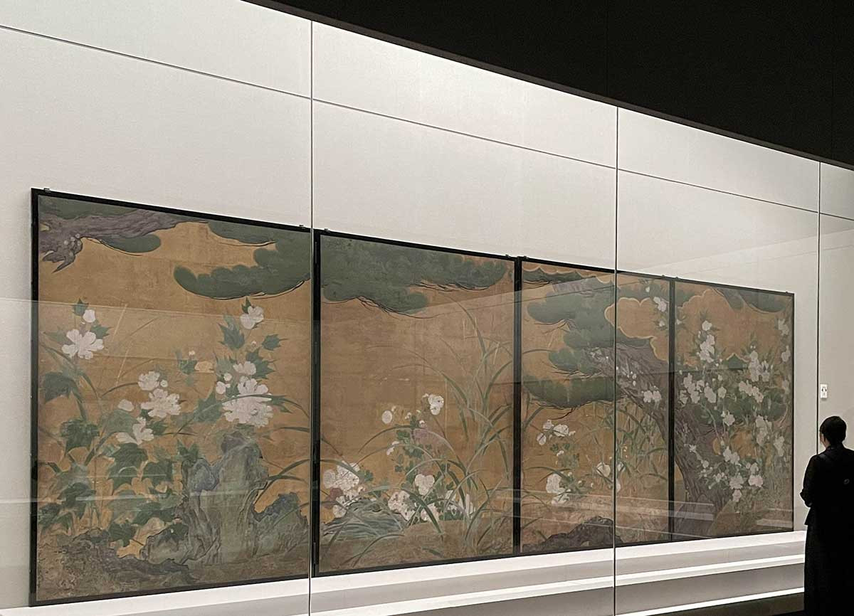 国宝 松に秋草図屏風 長谷川等伯筆 桃山時代 文禄元年(1592)頃 京都・智積院蔵(前期展示)