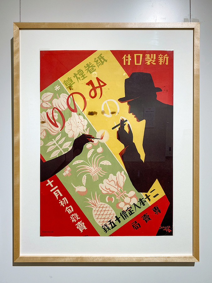 この分野の先駆けといえるのが、杉浦非水(1876-1965)です。三越呉服店の図案部で活躍した後、退職後はさまざまなジャンルのポスターを手がけました。「みのり」は新発売のタバコで、シルエットのデザインはモダンな印象です。