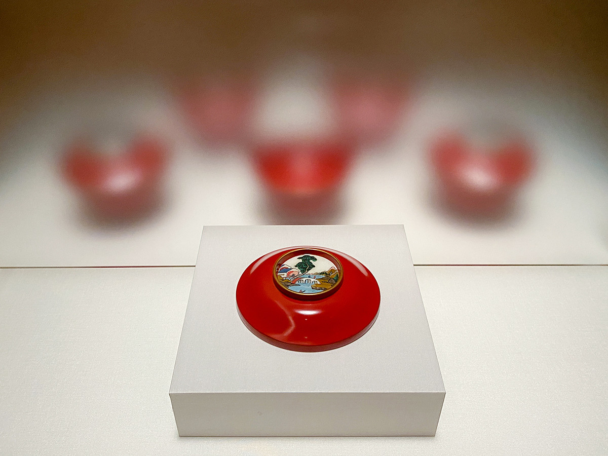 離れて展示されていると、文様や形、技法の違いを、おのずとよく見る事に。身と蓋がセットであることの意味を意識的に考えることができます。