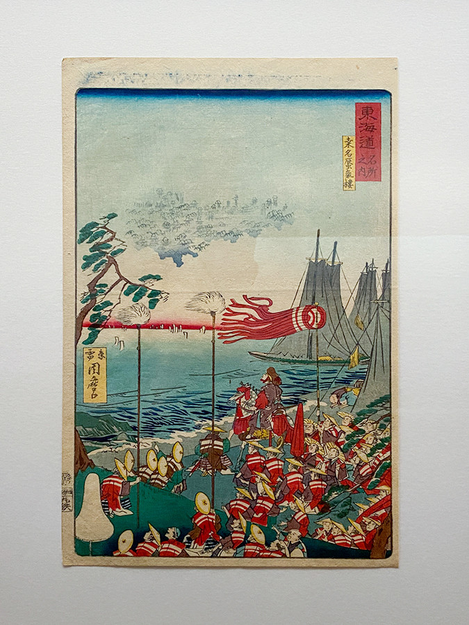 《東海道名所之内 桑名蜃気楼》は河鍋暁斎の作品。蜃気楼は伝説上の生物である蜃(大ハマグリや龍)が、気を吐いて楼台を出現させるものとされていました。