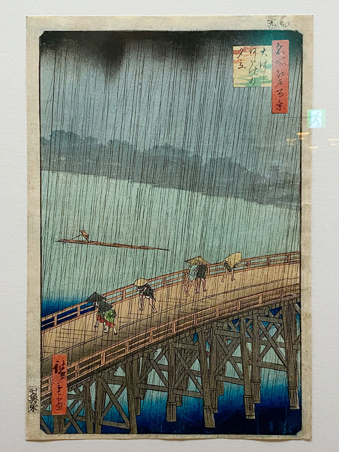 後期展の冒頭は、広重の《名所江戸百景 大はしあたけの夕立》。ゴッホも模写したこの傑作は、浮世絵全体を代表する作品のひとつといえるでしょう。
