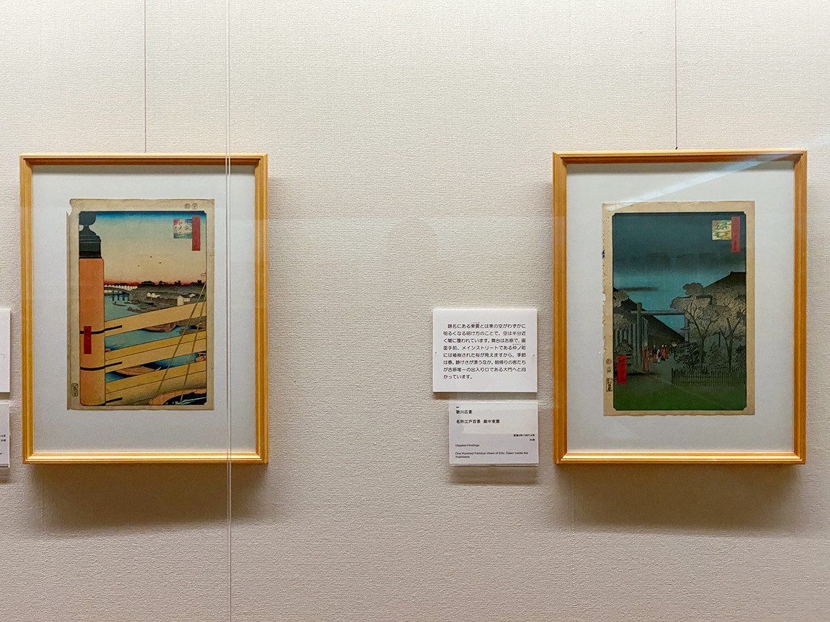 (左から)歌川広重《名所江戸百景 日本橋江戸ばし》安政4年(1857)12月 / 歌川広重《名所江戸百景 廓中東雲》安政4年(1857)4月