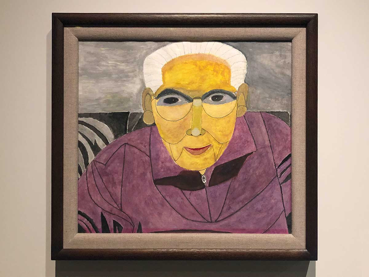 大胆にフォルムを省略しつつ繊細に描かれた風景画は、99歳で亡くなるまでの16年間で100余点にもなりました。会場には亡くなる一年前、98歳の時に描かれた自画像も展示されています。