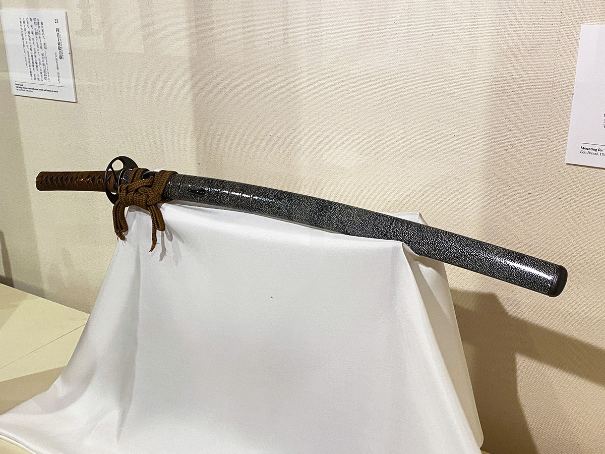 《歌仙拵》は、忠興の愛刀「刀 銘 濃州関住兼定作」(歌仙兼定)の拵。同時に展示されている「信長拵」とともに、肥後拵の大本として知られています。