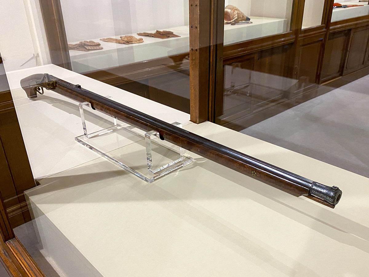 3階に下がって、第3章は「武将のこだわり」。江戸時代、尾張藩の「尾張拵」、薩摩藩の「薩摩弁」など、各藩で趣向を凝らした刀剣の外装が生み出されました。熊本藩でも2代・忠興が考案した拵を手本とした「肥後拵」がつくられています。