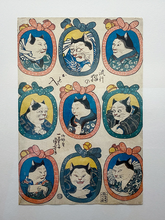 それぞれの猫のポーズは、とてもユニーク。国芳の真骨頂といえる作品です。