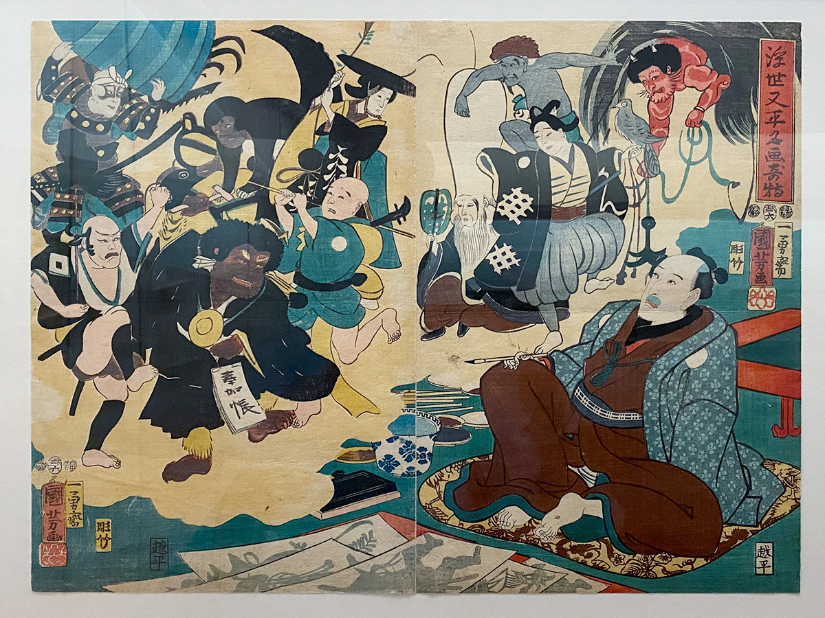 江戸時代後期に活躍した浮世絵師、歌川国芳(1797~1861)。売れない不遇の時期の後、30代前半に武者絵で大ブレイク。以後は戯画、役者絵、子供絵、風景画、美人画など、さまざまなジャンルで多彩な特品を手がけました。