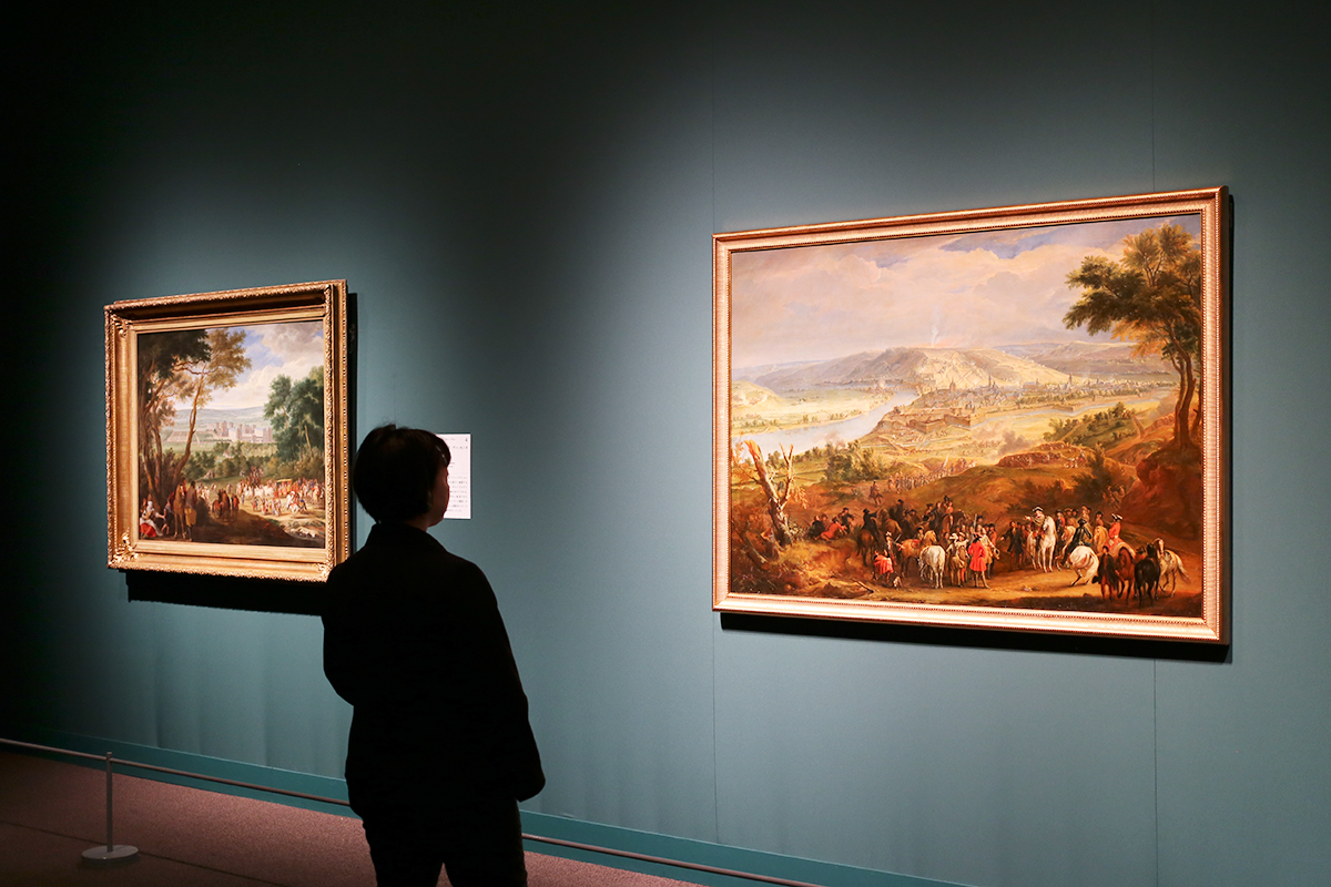 (左から)《ルイ14世の到着・ヴァンセンヌ》アダム・フランス・ファン・デル・ムーラン工房 17世紀末 / 《ナミュール包囲戦、1692年》ジャン=バティスト・マルタン 17世紀末-18世紀初め
